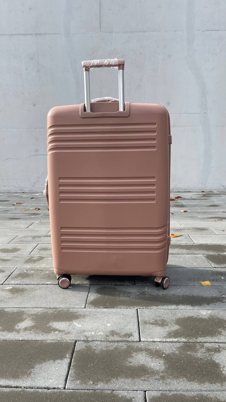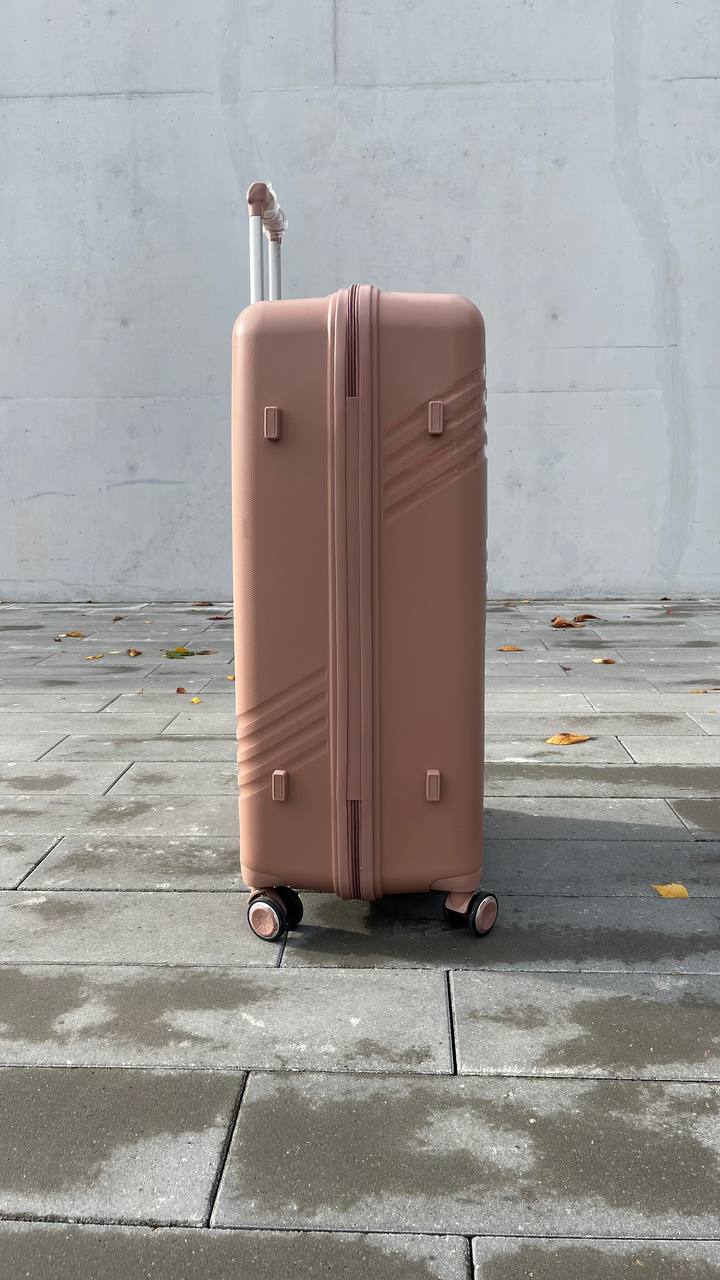 Пудровый цвет — это утончённость, спокойствие и ощущение продуманного стиля. Он выглядит мягко и премиально, выделяется среди тёмных чемоданов, но остаётся ненавязчивым и универсальным. Такой чемодан создаёт чувство уюта и уверенности в дороге, превращая даже длительную поездку в приятный опыт.