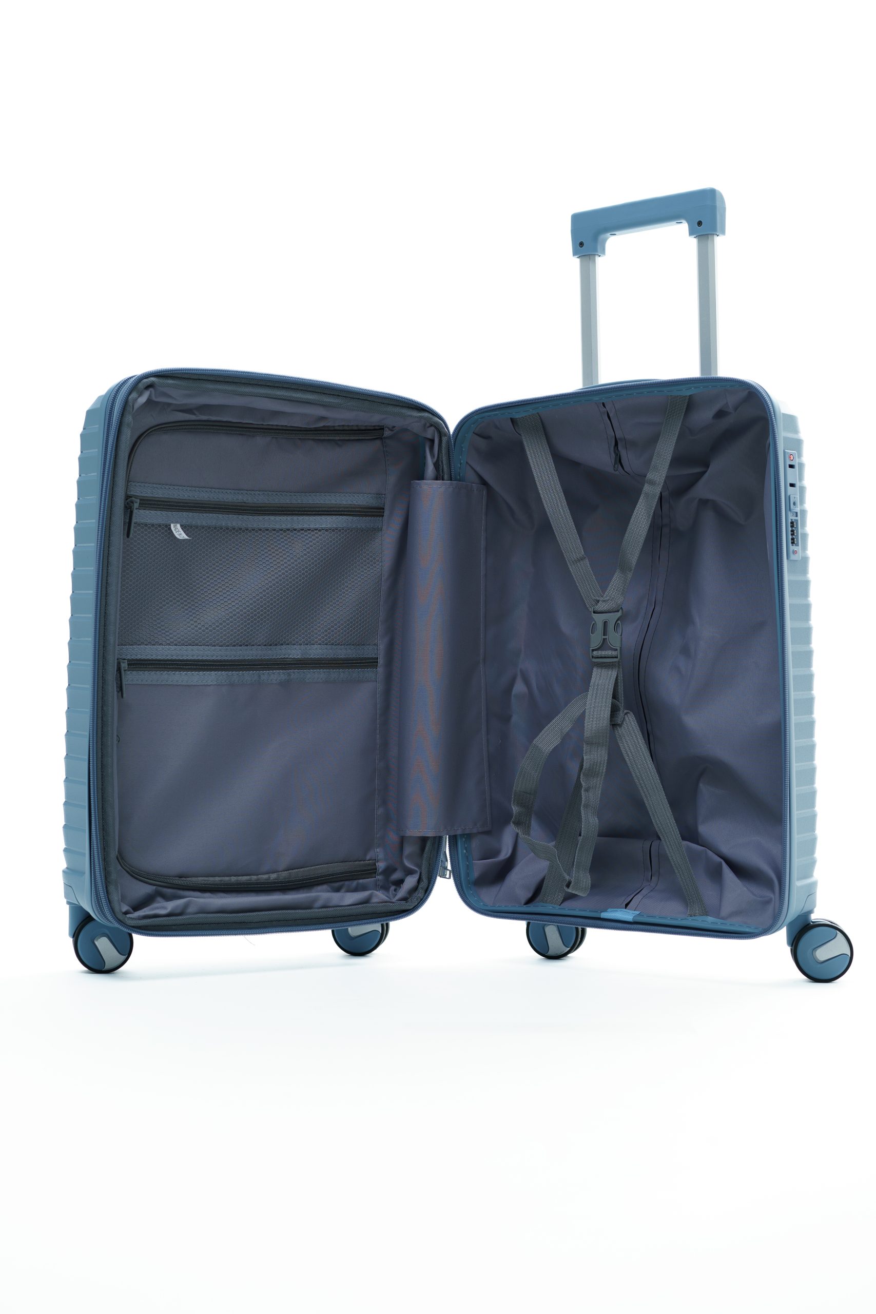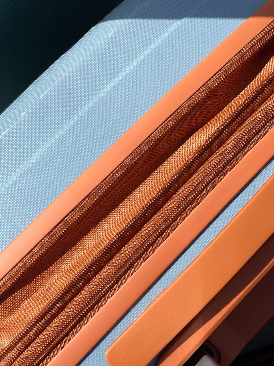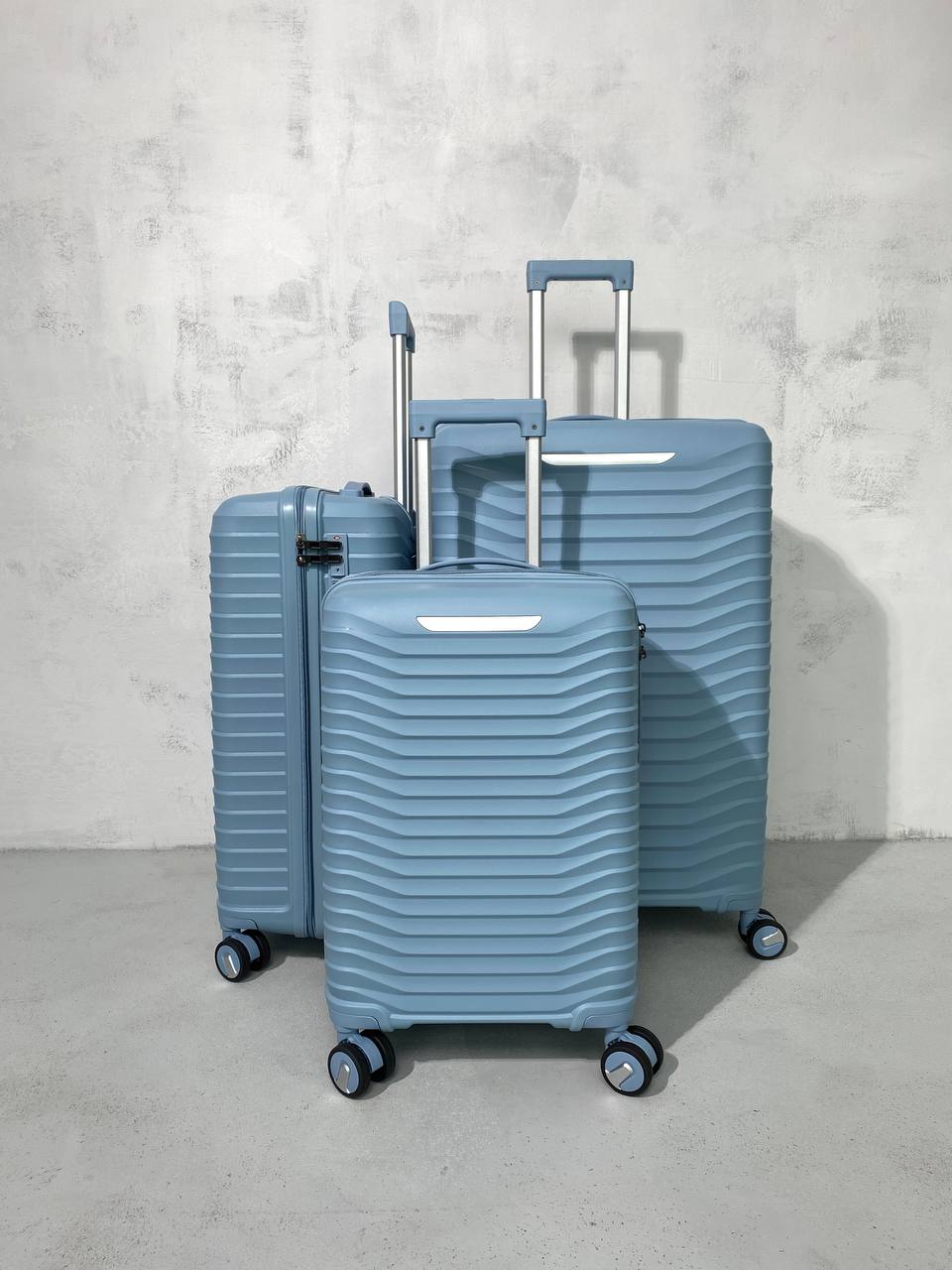 Нежный голубой оттенок ассоциируется с чистым небом и свободой. Он выглядит современно, аккуратно и универсально, легко выделяется на багажной ленте и помогает быстро найти свой чемодан. Такой цвет создаёт настроение отдыха ещё до начала поездки.