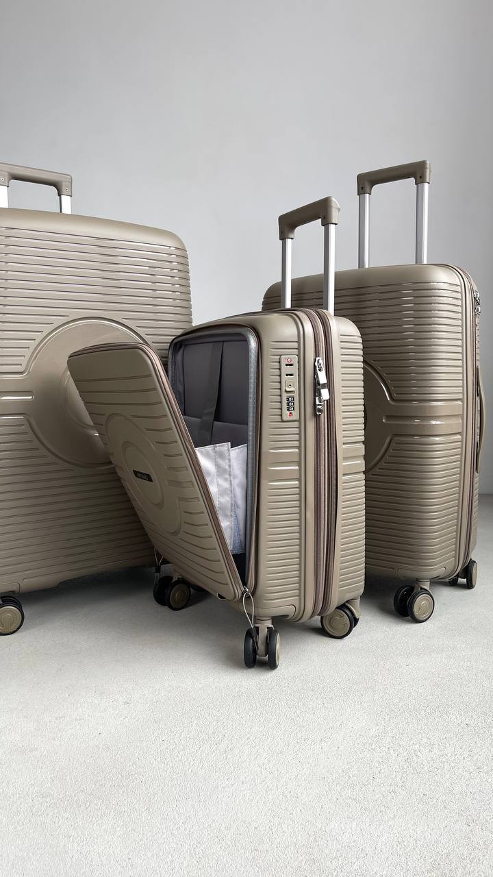 Корпус защищает содержимое от дождя, снега и влаги. Загрязнения легко удаляются обычной влажной салфеткой. Бежевый цвет долго сохраняет свежесть, а чемодан остаётся аккуратным и «как новый» даже после множества поездок.