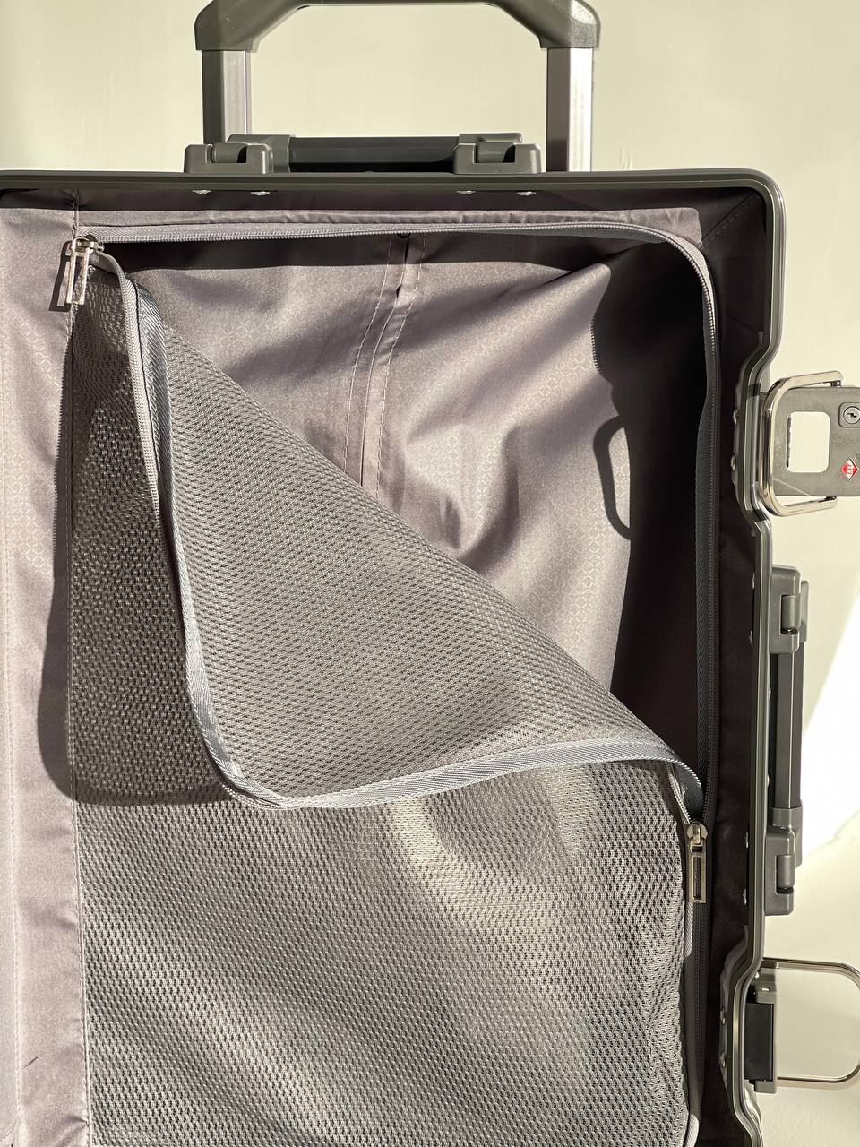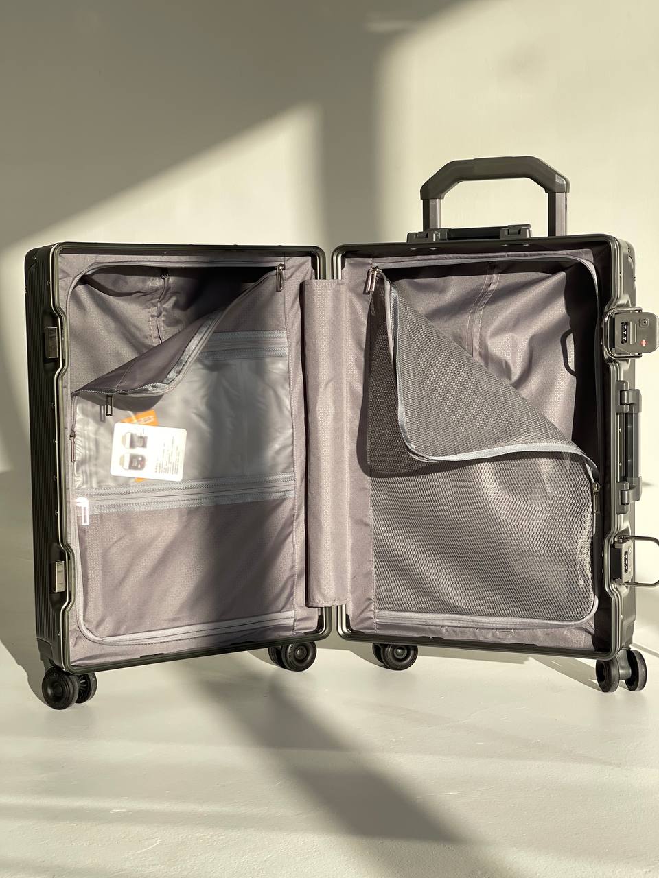Корпус выполнен из поликарбоната на алюминиевом каркасе— сочетания, которое используют в премиальном сегменте багажа.
